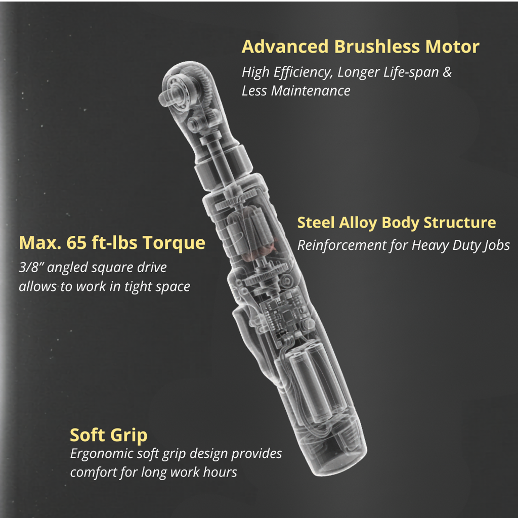 • HIGH PERFORMANCE – Our lightweight, powerful 65 ft-lbs. torque ratchet wrench is engineered with high-quality materials for fast and easy removal work. Equipped with an 3/8” alloy steel head and built-in LED light great for work in tight and dark spaces.